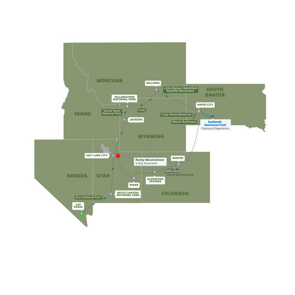 Your adventure with Rocky Mountaineer comes to a close as you transfer from Moab to Salt Lake City via motorcoach. You will arrive in downtown Salt Lake City approximately 6:00 pm, please be aware when booking your return flights. Guests may extend their stay in Salt Lake City or make their way independently to the airport.
