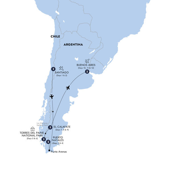 Travel through South America on this Patagonia guided tour, crossing Chile and Argentina to experience one of the world’s most remote and striking regions. Visit Torres del Paine and Los Glaciares national parks, cruise past towering icebergs and walk beneath the peaks of the Andes. Learn about traditional ranch life at an estancia, meet a glacier expert and discover how climate change is shaping the Southern Patagonian Ice Field. Along the way, explore Santiago and Buenos Aires, gaining insight into the political and cultural histories of South America’s southern capitals.